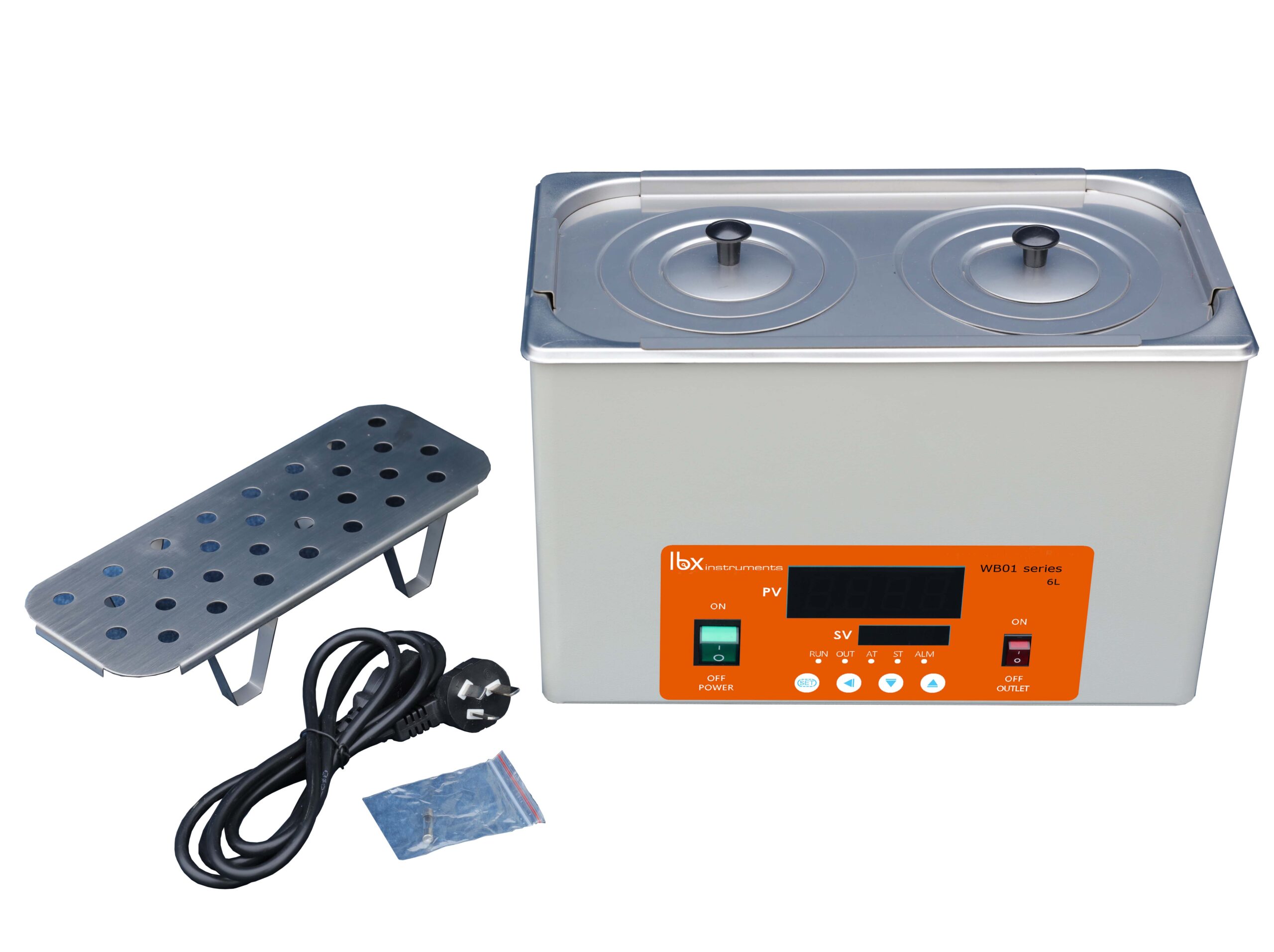 Chasis metálico con exterior pintado en epoxi con tratamiento antioxidante y cuba de acero inoxidable 304. Regulación digital de temperatura entre ambiente +5 °C y 100 °C (Resolución: 1°C). Pueden funcionar en modo continuo o bien programarse mediante un temporizador digital para trabajar en periodos de tiempo concretos, desde 1 min. hasta 9999 min, con señal acústica. Doble pantalla digital de temperatura y tiempo. Alarma de sobrecalentamiento del baño. Incluye plataforma cubreresistencias, tapa removible con orificios (11 cm) y anillos reductores (8 y 5 cm). Cuenta con manguera de desagüe (excepto modelo TWBA-001-001). Llenar con agua purificada y una pequeña cantidad de agua corriente para garantizar la conductividad. 220 V / 50-60 Hz. Garantía 2 años