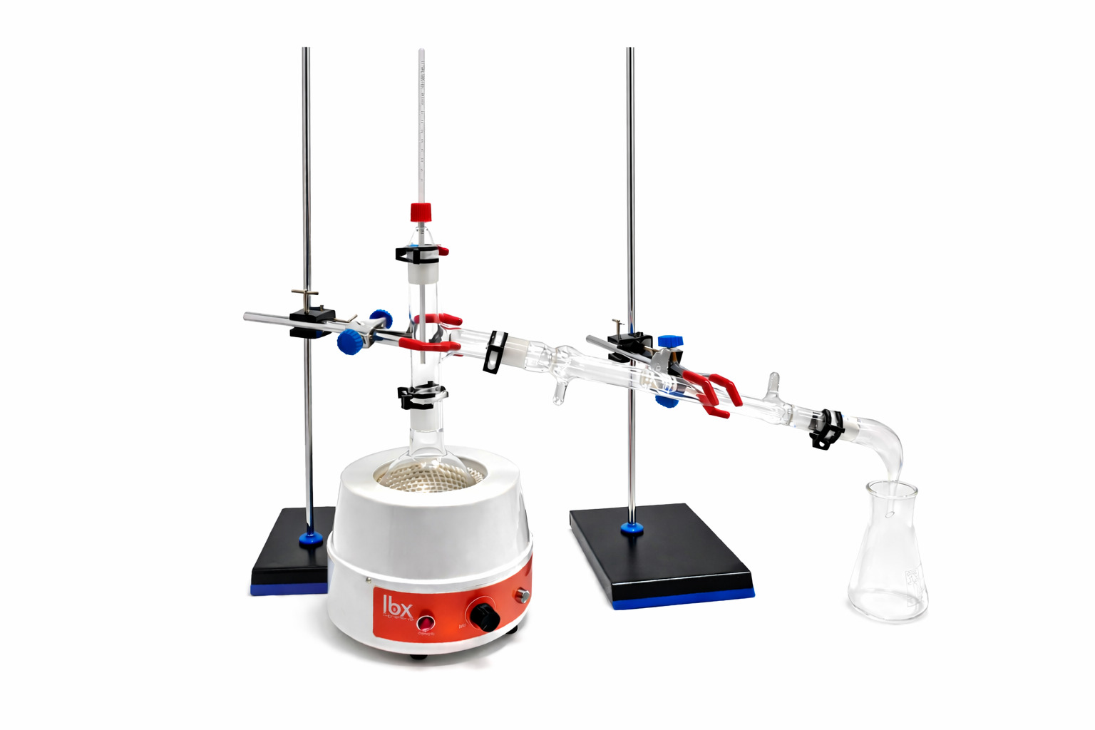Fabricado en vidrio borosilicato 3.3 de calidad superior. Incluye 1 refrigerante recto de 250 mm, 1 matraz fondo redondo 250 ml, 1 cabezal para destilación, 1 adaptador para termómetro, 1 colector acodado, 1 termómetro (-10 a +110 °C) y las pinzas de POM necesarias para los esmerilados. Todos los esmerilados son 29/32. El conector es para tubo de Øint. 8 mm. Se recomienda combinar con 2 soportes RTMM-300-001, 2 pinzas RPS3-025-001, 4 nueces dobles BOSS-001-004, la manta calefactora HEAM-250-001, la tubería de silicona SILT-008-005 y la grasa para juntas SGRE-025-100
