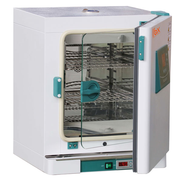 Mueble exterior metálico pintado al horno con resina epoxi. Cámara interior de acero inox. Sistema de circulación de aire que homogeniza la temperatura en toda el área de trabajo. Para temperaturas de RT+ 5ºC hasta 70ºC. Resolución: 0,1ºC. Fluctuación de la Tª: ±0,5ºC. Dos pantallas LCD que muestran la temperatura real y la establecida. Función de temporizador (0-9999min). Función de esterilización UV. Homogeneidad y estabilidad de la Tª: ±0,8ºC. Puerta interior de cristal que permite ver las muestras. Fácil de limpiar. Suministradas con dos bandejas de rejilla regulables en altura (acepta más bandejas, ver tabla). 220 V / 50-60 Hz. Garantía 2 años