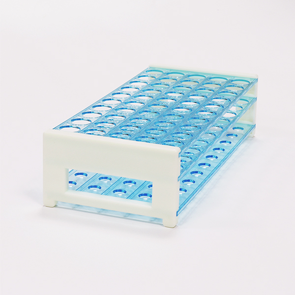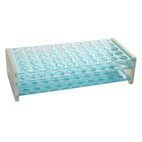 PRÁCTICO – soporte transparente con orificios redondos e inscripción alfanumérica para una fácil identificación. Diseño de 3 niveles para una cómoda inserción y extracción del tubo. El rack es desmontable, lo que lo hace compacto y fácil de transportar.